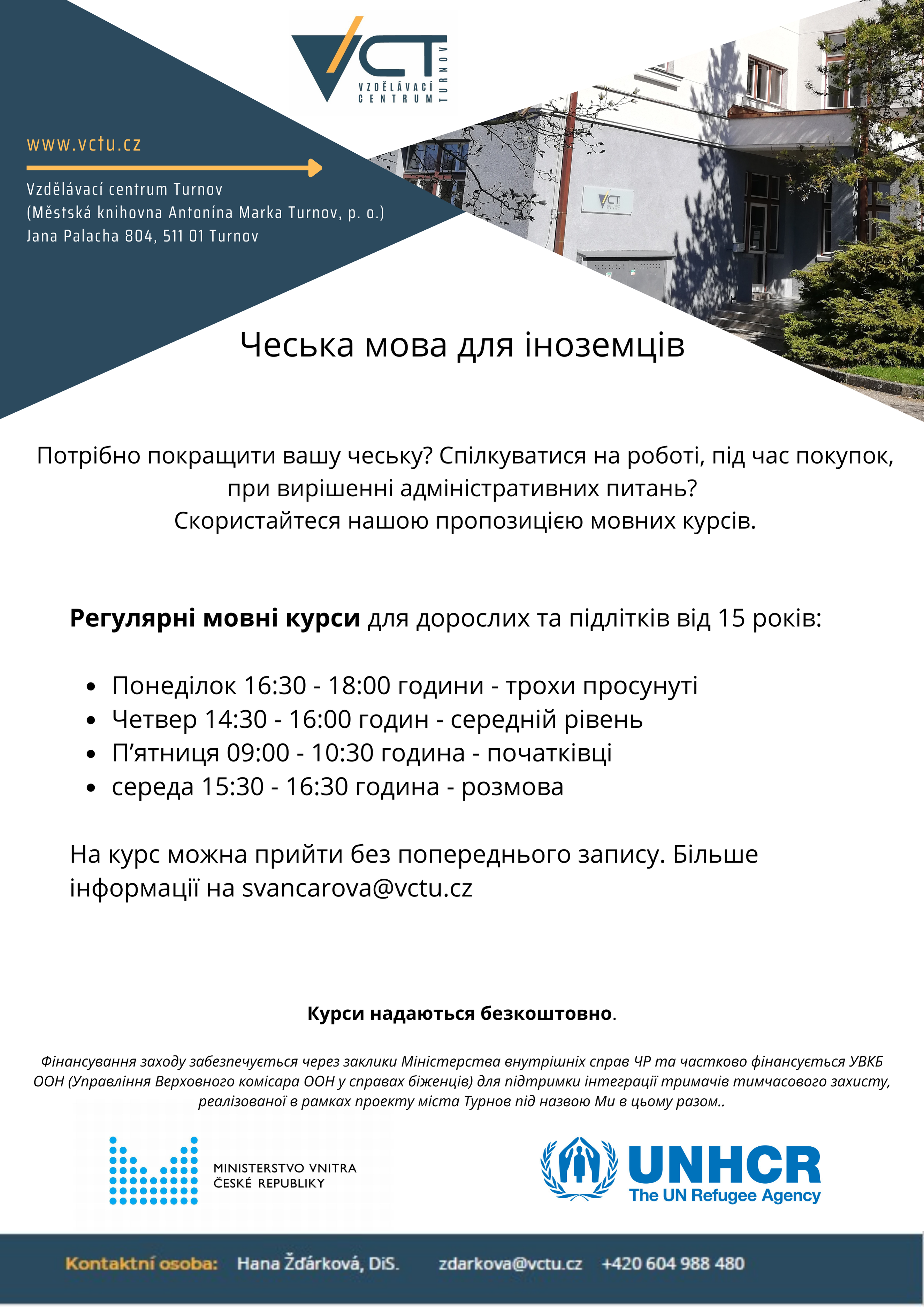Financování akce je zajištěno přes výzvy Ministerstva vnitra ČR a spolufinancováno UNHCR (Úřad vysokého komisaře OSN pro uprchlíky) na podporu integrace držitelů dočasné ochrany realizované v rámci projektu města Turnova s názvem Jsme v tom společně.